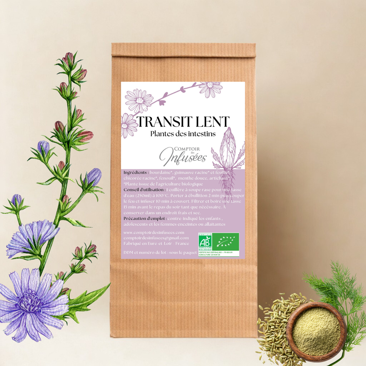 Stimulez votre digestion avec la tisane bio transit lent. 100% bio, idéale pour favoriser un transit intestinal régulier et naturel.